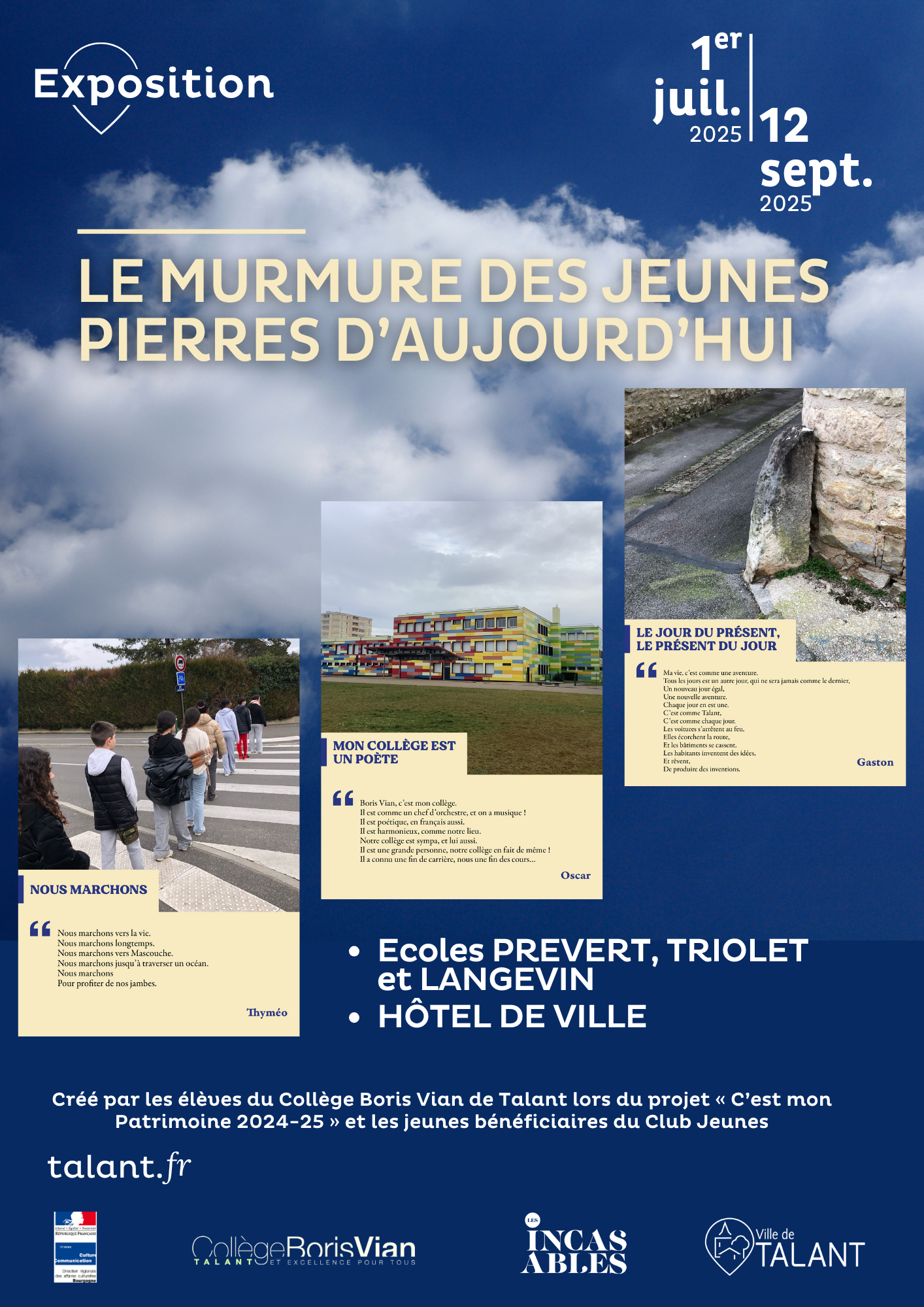 Exposition créée par les élèves du collège Boris Vian de Talant lors du projet « C’est mon patrimoine 2024-25 et les jeunes bénéficiaires du Club Jeunes.