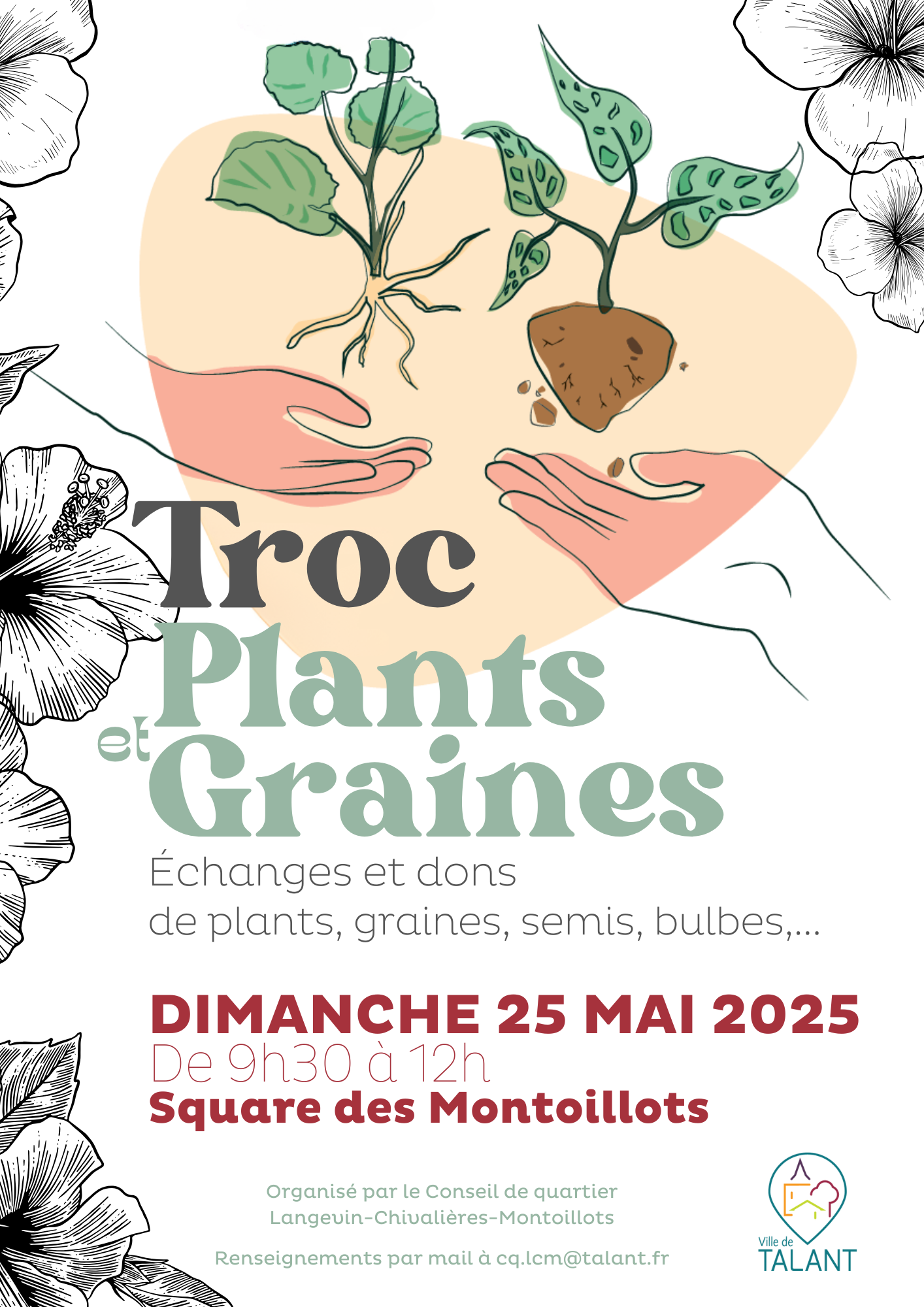 Le Conseil de quartier Langevin-Chivalières-Montoillots organisera un “Troc plantes & graines” le dimanche 25 mai 2025 de 9h30 à 11h au square des Montoillots.