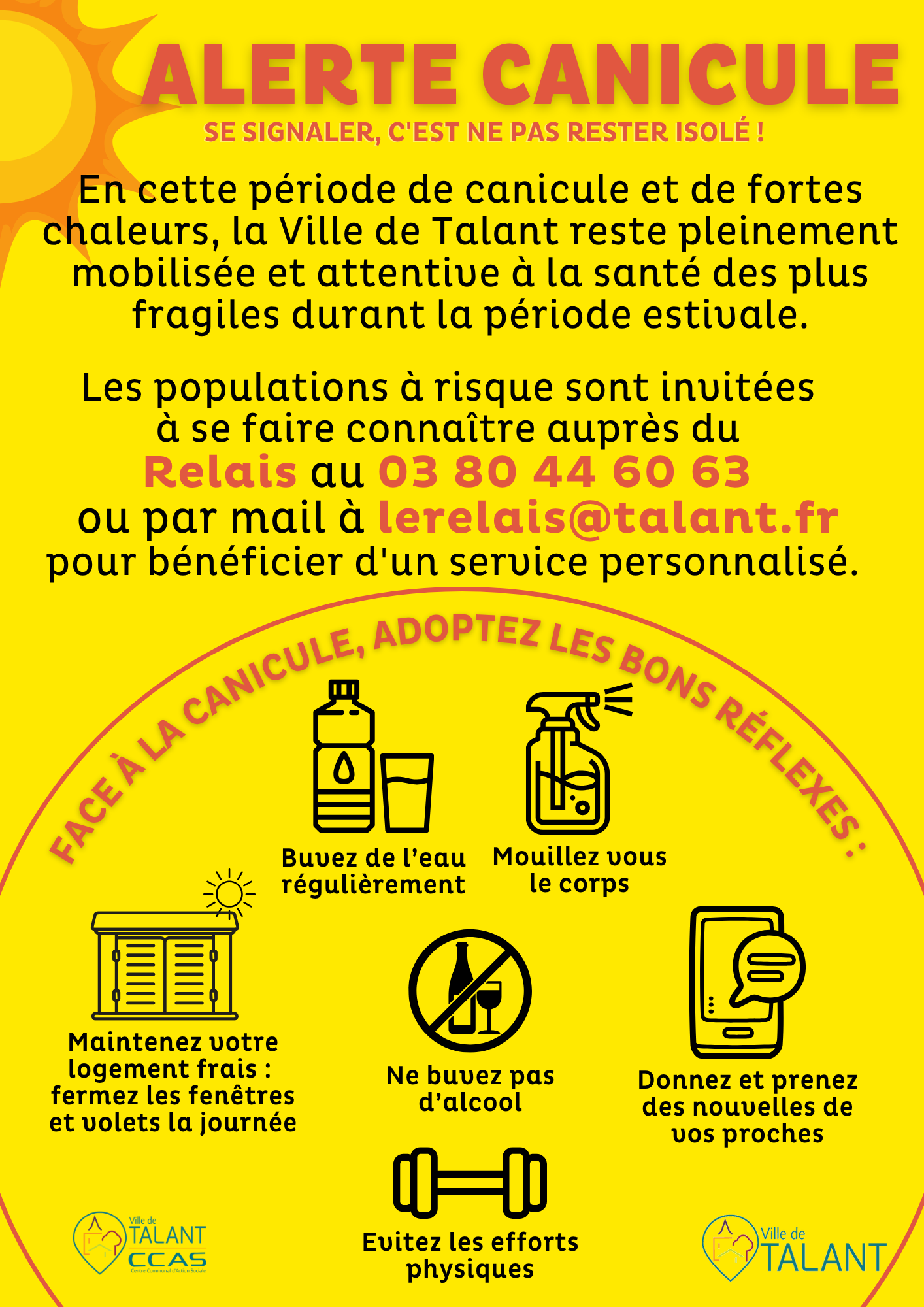 En cette période de canicule et de fortes chaleurs, la Ville de Talant reste pleinement mobilisée et attentive à la santé des plus fragiles durant la période estivale.