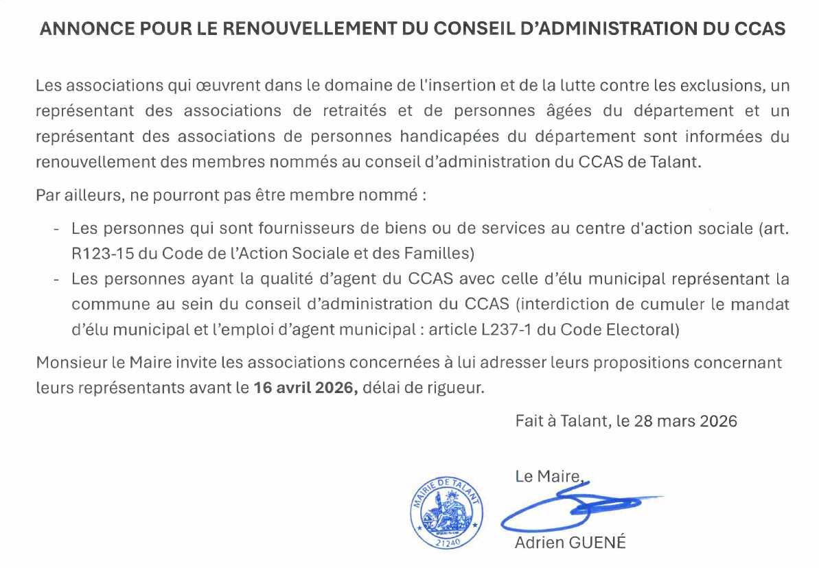 Annonce pour le renouvellement du Conseil d’Administration du CCAS