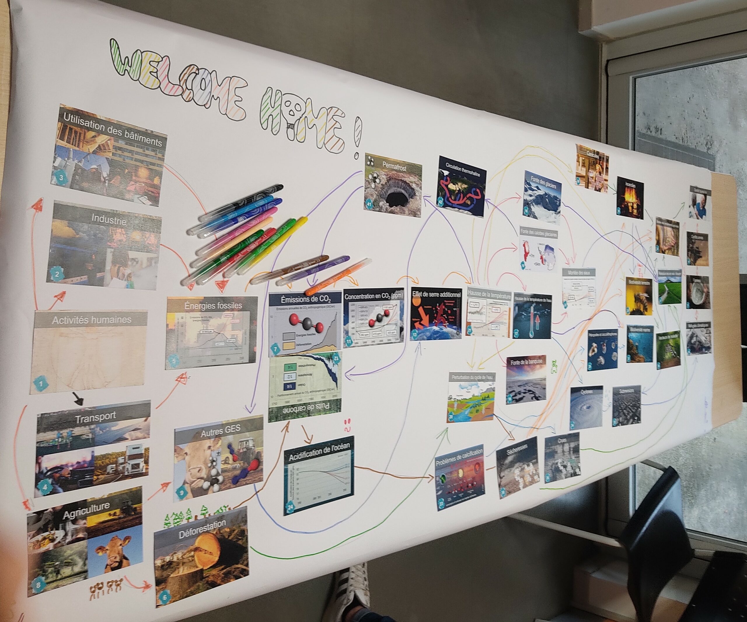Le 18 novembre 2023, la Commission Environnement du Conseil de Quartier a organisé à La Turbine (en partenariat avec la Ville de Talant et Dijon Métropole) un atelier « Fresque du climat ». 17 participants, de toutes générations, se sont réunis et ont formé trois groupes pour réfléchir à tous les enjeux climatiques.