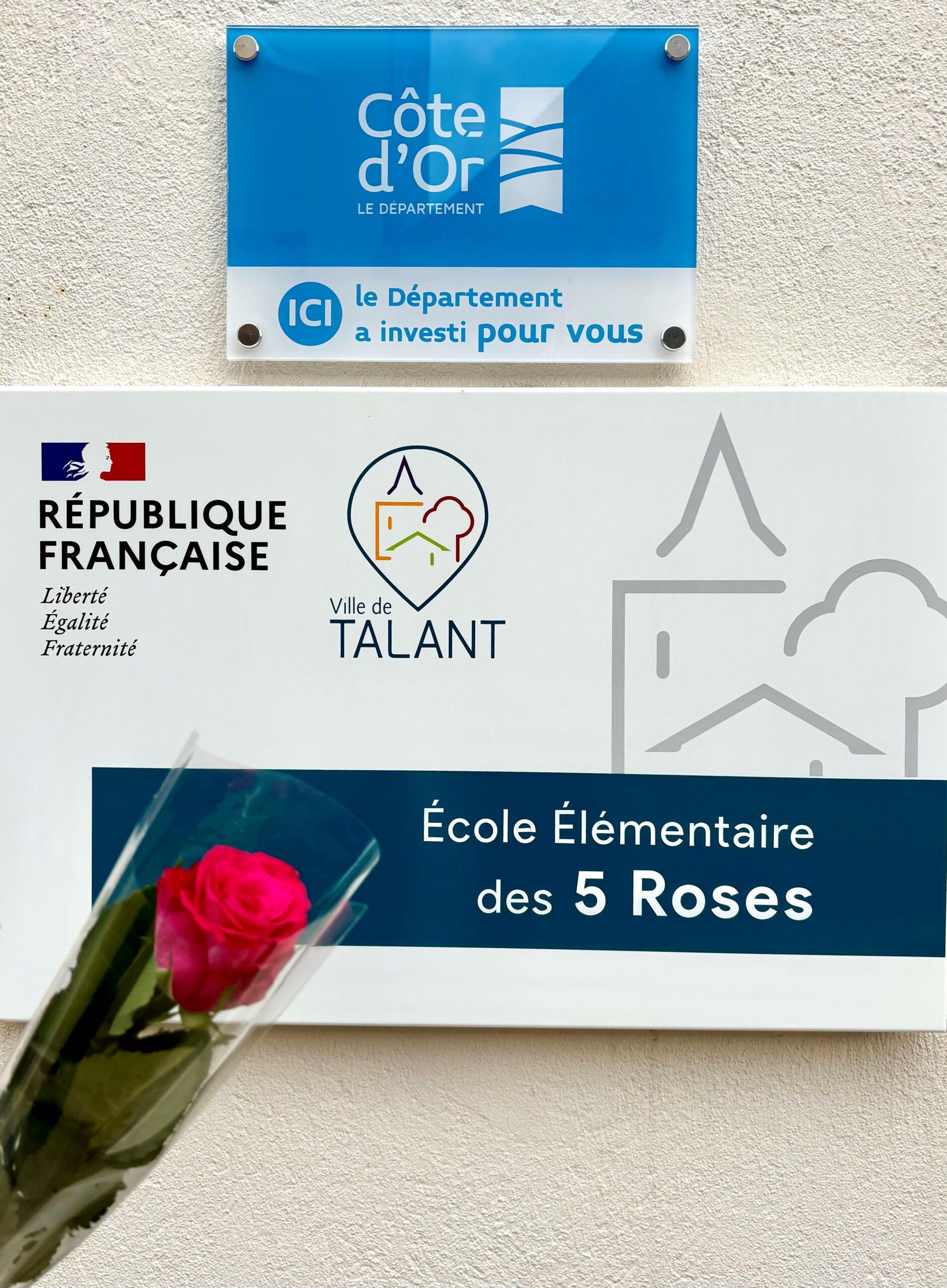Vendredi 29 août, Fabian Ruinet, Maire de Talant, et Catherine Renosi, adjointe déléguée à l’Éducation, à l’Enfance et à la Jeunesse, ont inauguré le groupe scolaire des 5 Roses, né de la fusion administrative des écoles Jean Macé et Marie Curie.