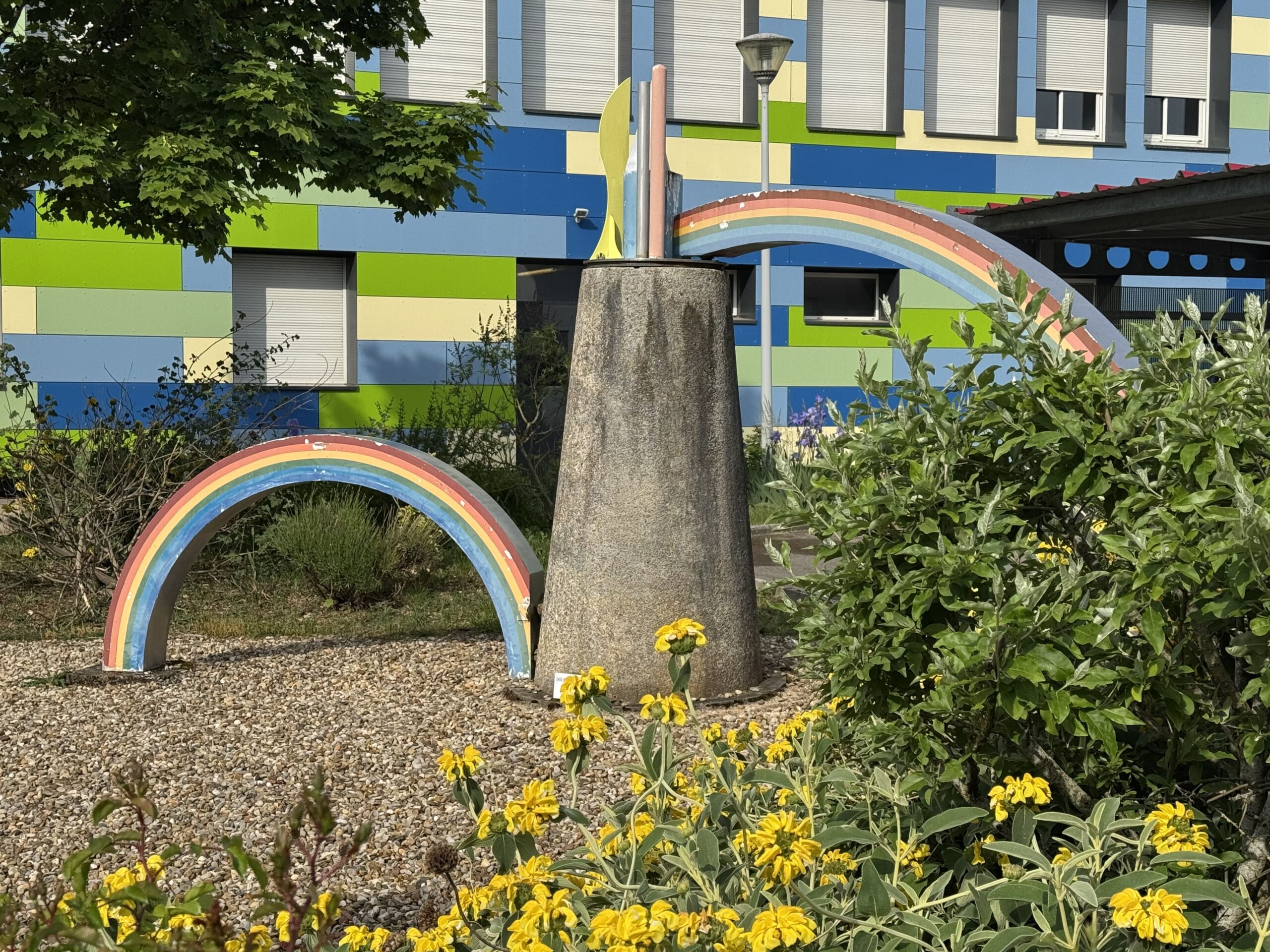Commande publique dans le cadre du 1% artistique. L'œuvre Double Arc en Ciel accueille les visiteurs à l'entrée du collège Boris Vian de Talant. Composée de deux arcs élancés en béton, habillés d'acier inoxydable coloré et d'émail, cette sculpture monumentale est conçue comme un portail symbolique : une invitation à franchir un seuil vers le savoir, à l'image du passage d'un monde à un autre, celui de l'enfance vers celui de la connaissance. Son déploiement en arche, rappelant le motif universel de l'arc-en-ciel, célèbre l'espoir, la diversité et l'ouverture d'esprit.