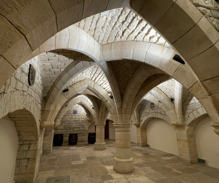Dernier vestige du château ducal, construit au XIIIe siècle, cette grande cave présente des voûtes d’ogives supportées par 3 piliers divisant la salle en 8 travées sur 2 nefs. Long de 25,80 m et large de 5 m, entièrement pavé de dalles de Bourgogne, le cellier montre sur ses parois les traces de 8 caveaux où vieillissait le vin. Après la démolition de la forteresse en 1598, il tomba peu à peu dans l’oubli. Partiellement effondré, il fut redécouvert en 1848 à l’occasion de sondages et fit l’objet de plusieurs tentatives de déblaiement. Les travaux définitifs de réhabilitation ont débuté en 1971. L’escalier, les premières et deuxièmes travées sont complètement dégagés en 1973. En 1974, le travail des chercheurs est terminé et laisse la place aux travaux de restauration. En septembre 1983, le Cellier est de nouveau accessible.