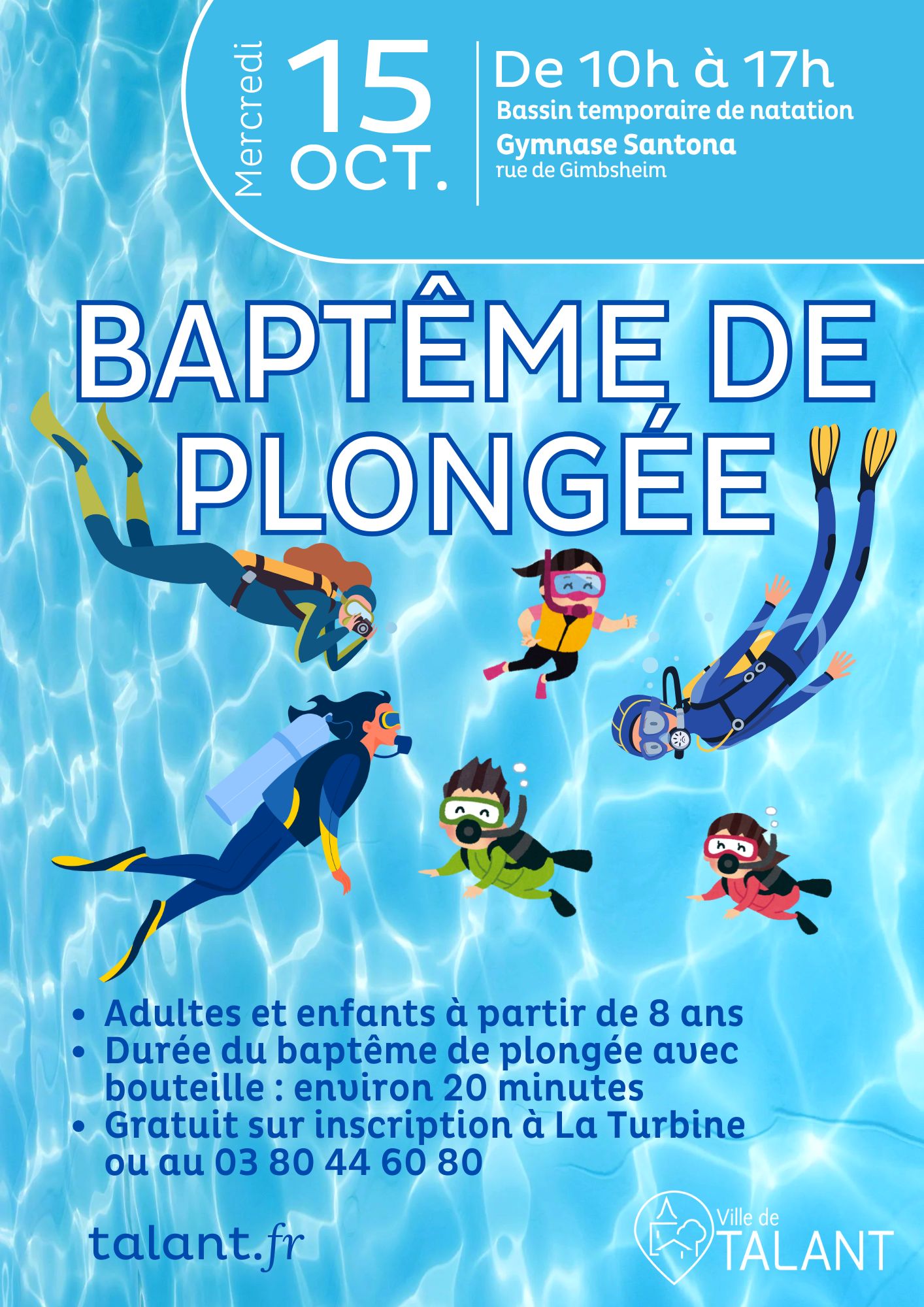 Durée du baptême de plongée avec bouteille : environ 20 minutes