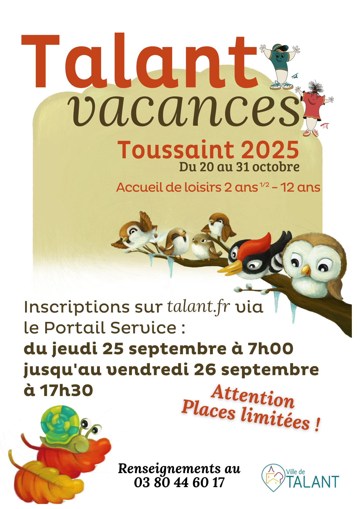 Inscriptions sur talant.fr via le Portail Service : du jeudi 25 septembre à 7h00 jusqu’au vendredi 26 septembre à 17h30