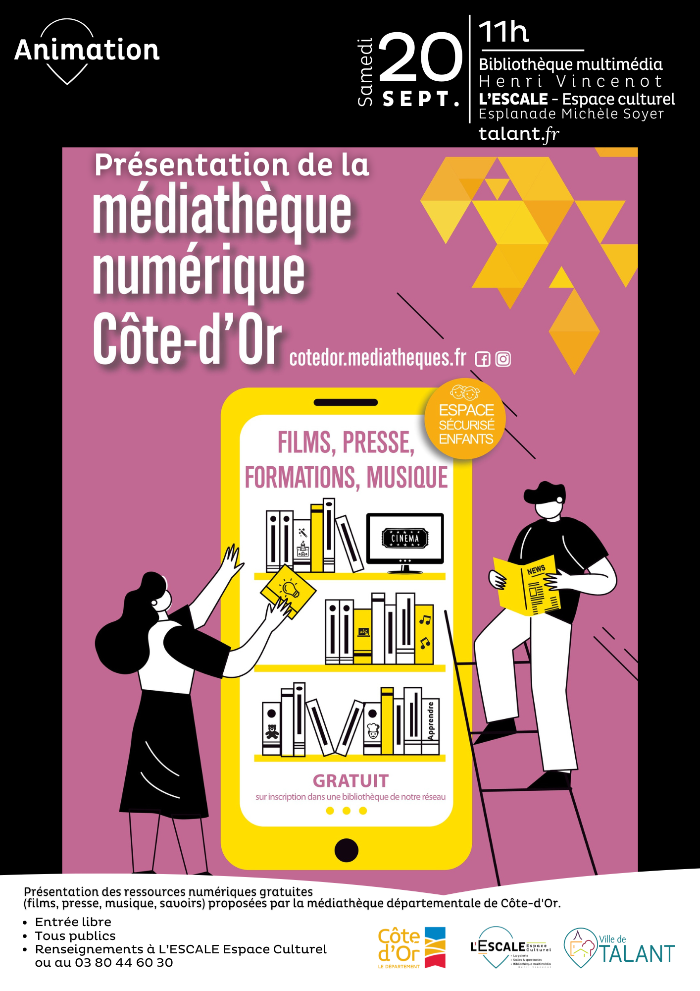 Présentations des ressources numériques gratuites (films, presse, musique, savoirs) proposées par la médiathèque départementale de Côte-d’Or.