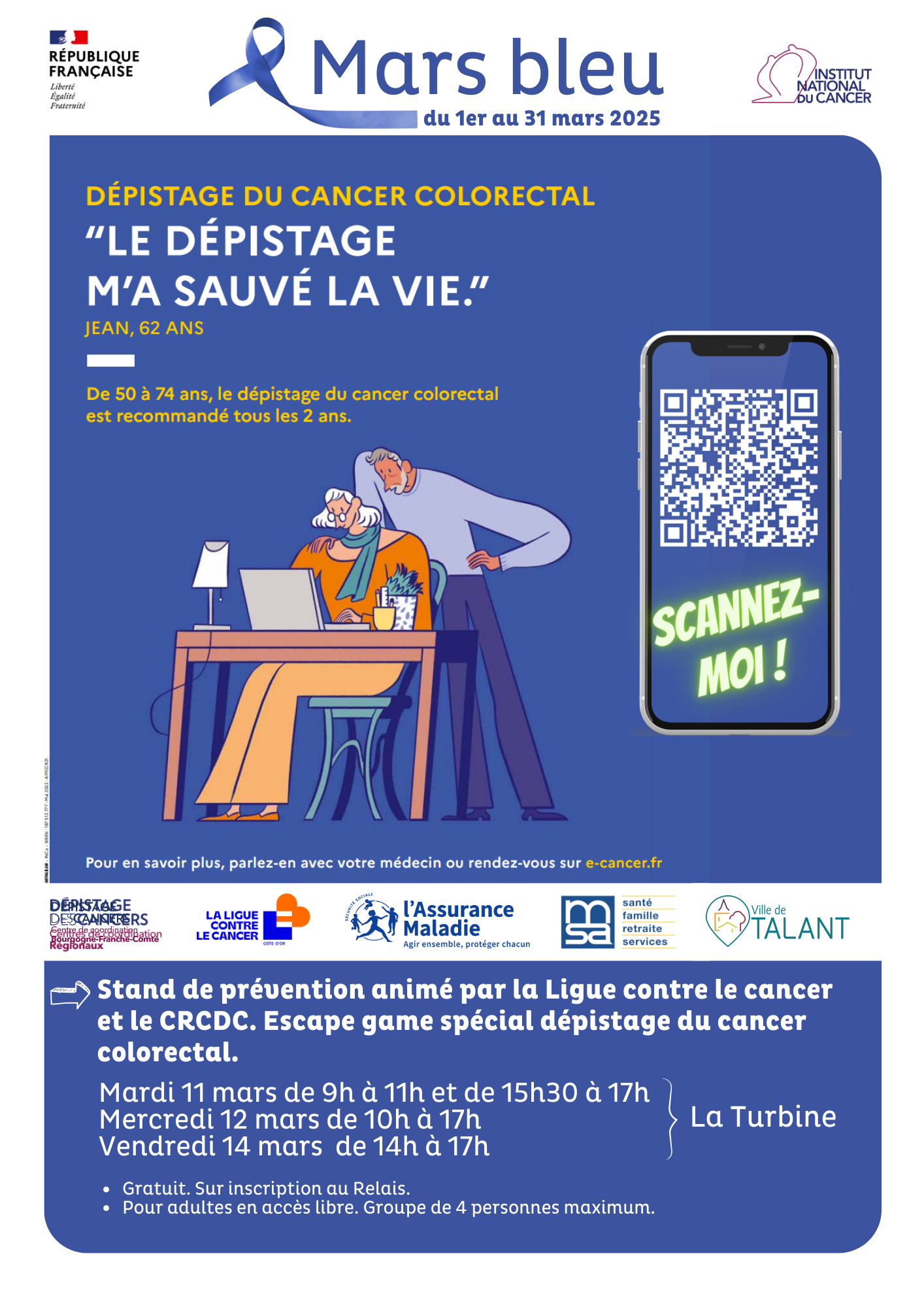 Stand de prévention animé par la Ligue contre le cancer et Escape game spécial dépistage du cancer colorectal
