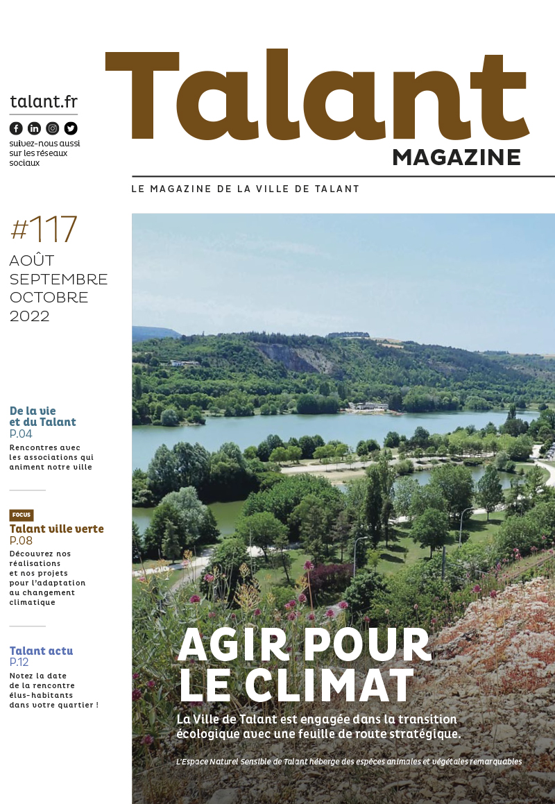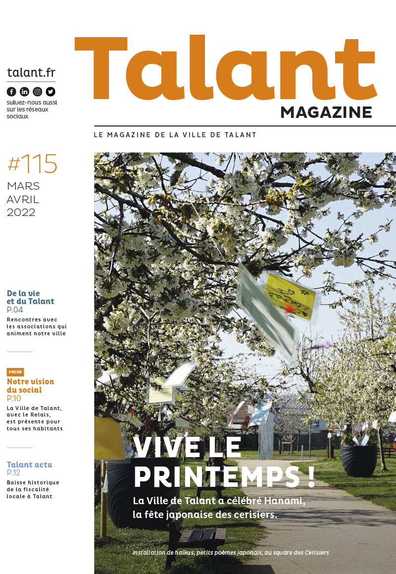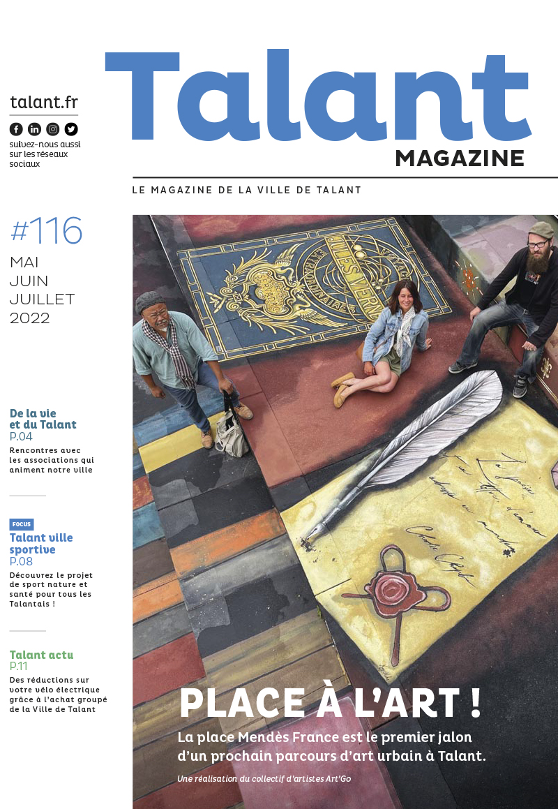 Notre ville se transforme sous l’impulsion de la municipalité, elle bouge aussi avec ses forces vives et ses associations. Talant Magazine se fait l’écho de cette dynamique.